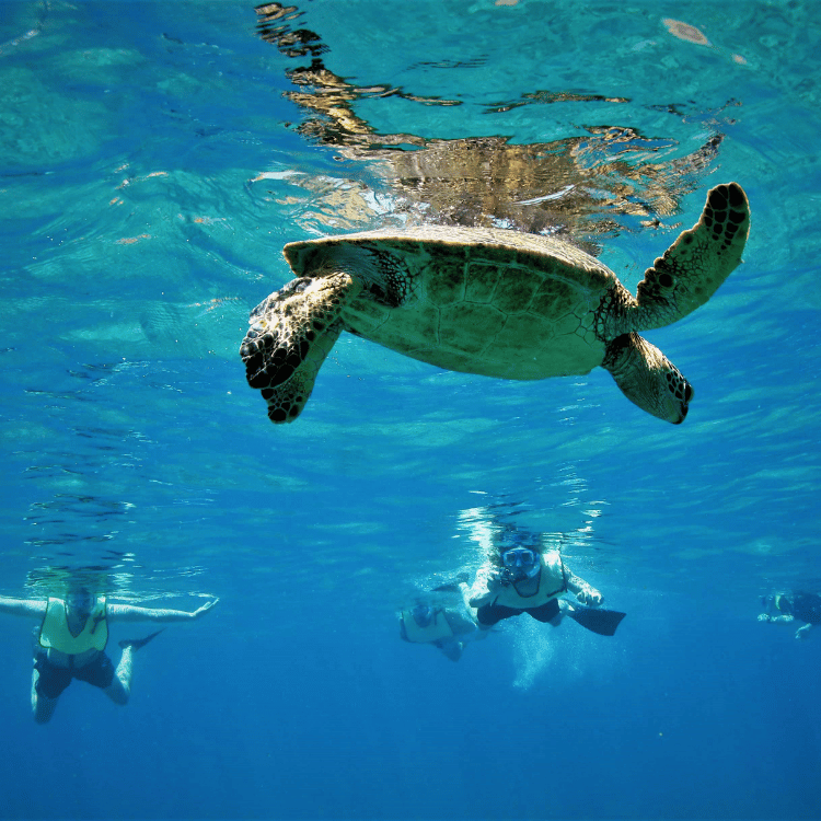 The water here is calm and swimmable, inviting you in for morning snorkels, paddleboard sessions, or long, unhurried swims. Sea turtles are often spotted along the reef, and during whale season, humpbacks breach in the distance.